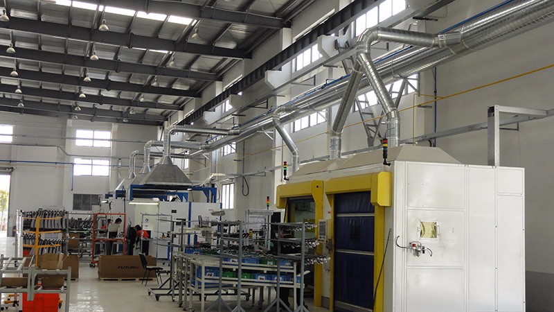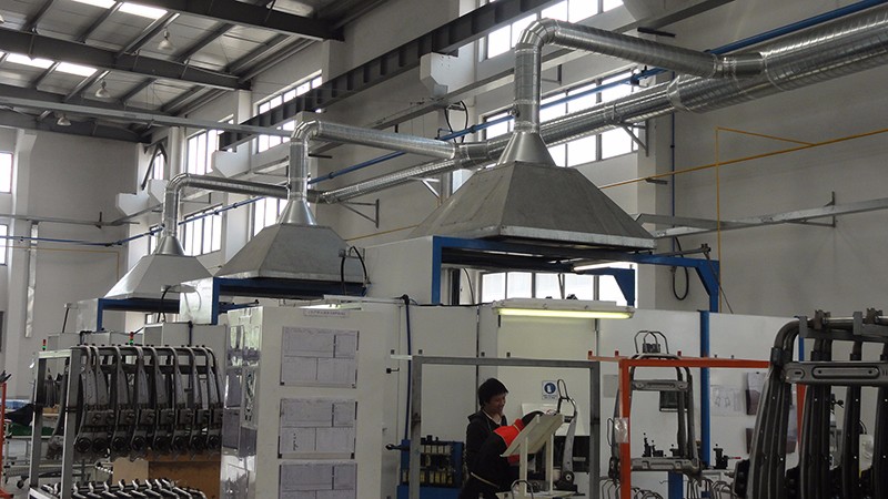 焊接與切割是汽車消費的主要工藝之一,但在焊接、切割及相關(guān)工藝過程中產(chǎn)生的大量煙霧是一種可吸入的空氣污染物質(zhì)。 當這些物質(zhì)超允許濃度時,就會危害人體安康。例如,能夠招致慢性中毒、吸肺病以及神經(jīng)衰弱等職業(yè)病。因而,在作業(yè)現(xiàn)場應采取收塵控制措施,以防焊接金屬粉塵濃度超標危害人身安康。 室內(nèi)空氣污染的特性由于車間室內(nèi)空氣污染與大氣空氣污染所處的環(huán)境不同,其污染特性也不同,室內(nèi)空氣污染具有如下特性:影響范圍廣,觸及人群數(shù)量大影響范圍:車間內(nèi)觸及人群,包括整個年齡組。 接觸時間長人每天在車間渡過的時間占30%-40%,即便室內(nèi)有濃度很低的污染物,當長期作用于人體后,也會影響身體安康。 金工熱加工污染物品種多空氣中的污染物既有一氧化碳等,還有物理性污染,如煙氣、塵埃等顆粒污染物。 熱點技術(shù)污染物濃度高由于室內(nèi)是個較封鎖的環(huán)境,在沒有或少量通風時,污染物不能排放到室外,大量污染物在室內(nèi)囤積。嚴重時,室內(nèi)污染物濃度可超室外幾十倍,以至高達上百倍。 所示為我公司為汽車廠提供的除塵解決方案現(xiàn)場。